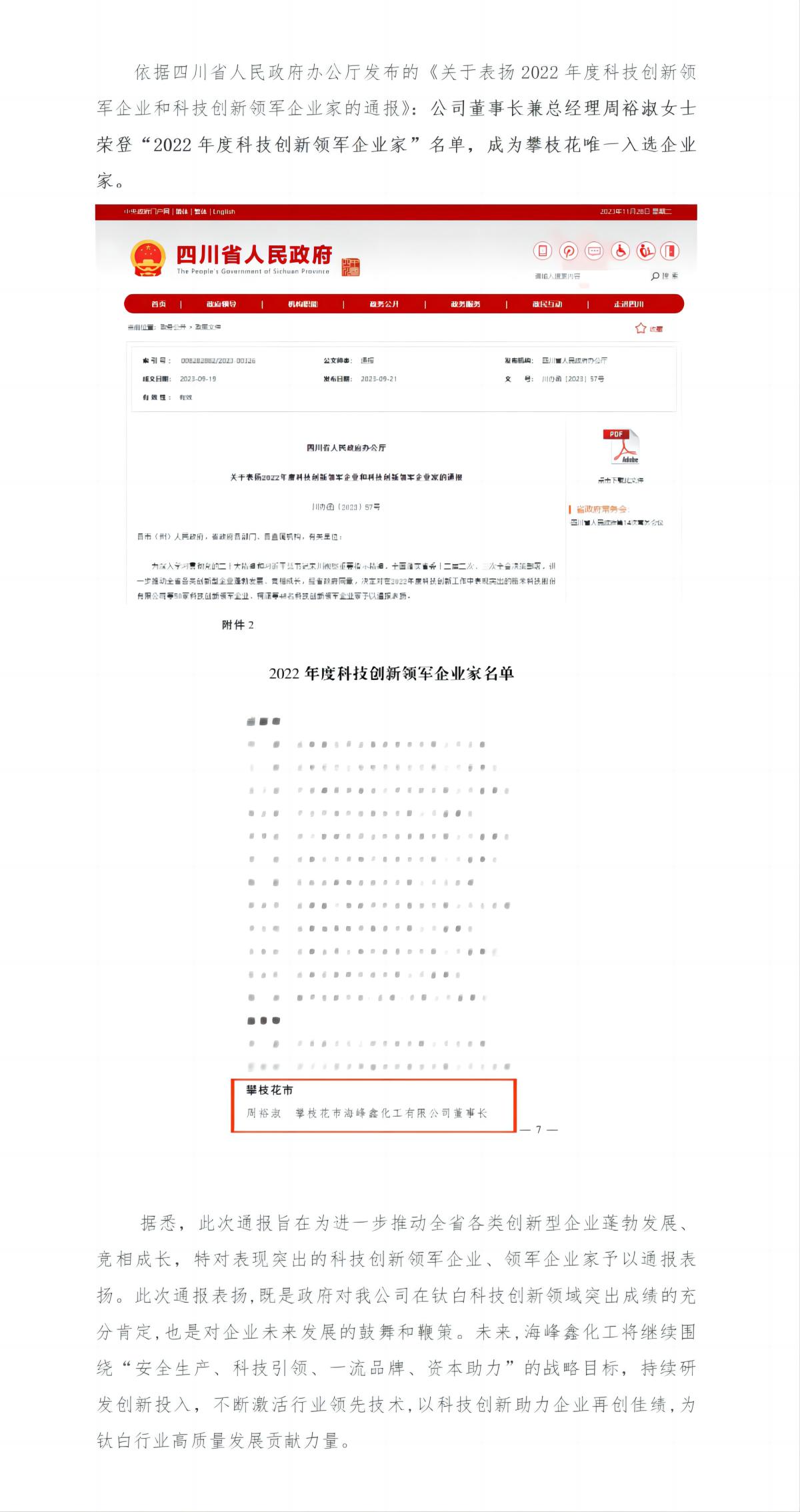 【喜報(bào)】公司董事長周裕淑女士榮獲四川省2022年度科技創(chuàng)新領(lǐng)軍企業(yè)家稱號(hào)